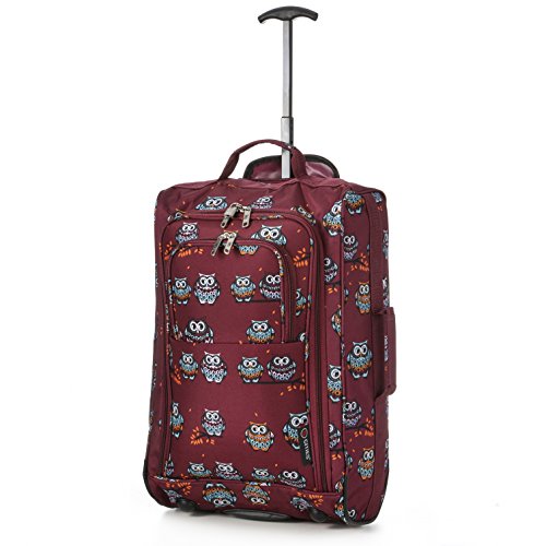 5 Cities offer Cabin Bag Trolley with Wheels Hand Luggage Flight Bags Travel Suitcase for Easyjet, Ryanair, British Airways, Virgin, FlyBe, Jet 2 and Many others Airlines (Owls Burgundy). This awesome product currently limited units, you can buy it now for £14.99, You save -