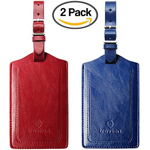 Best Seller! Travlion Set Of 2 Luggage Tags & Bag Travel Business Card Holders from Microfiber Leather with Steinless Steel Buckle and Privacy Flap in 3 Colours, Premium Quality (Red + Blue) Review